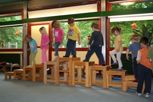 Er bietet Platz für Bewegung und gezielte Turnstunden sowie Gruppenaktivitäten, die Platz brauchen.